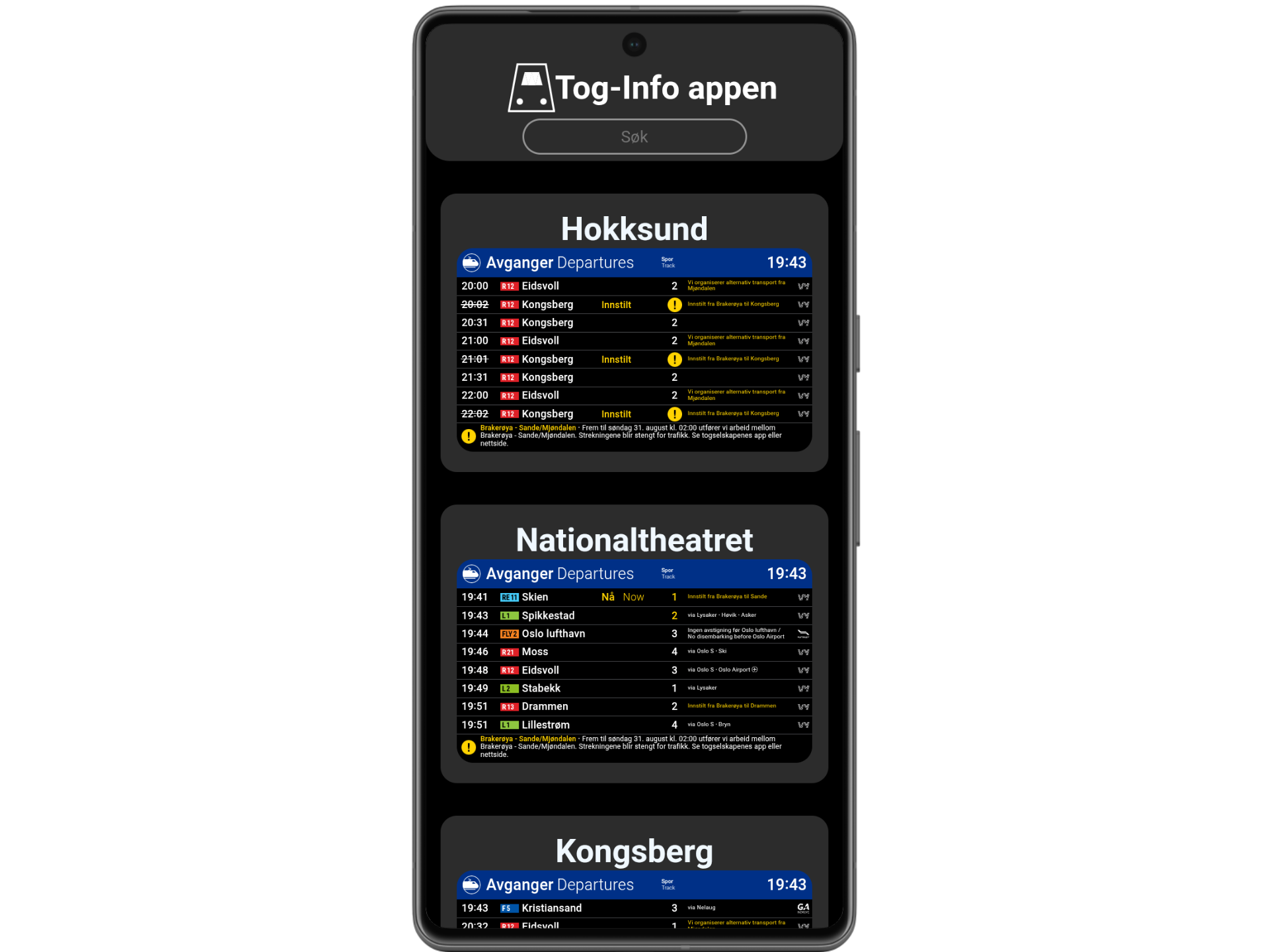We are a creative group of friends, who like to work on software projects together. One of our most used projects is TogInfoAppen. With TogInfoAppen you get information about the Norwegian train network.